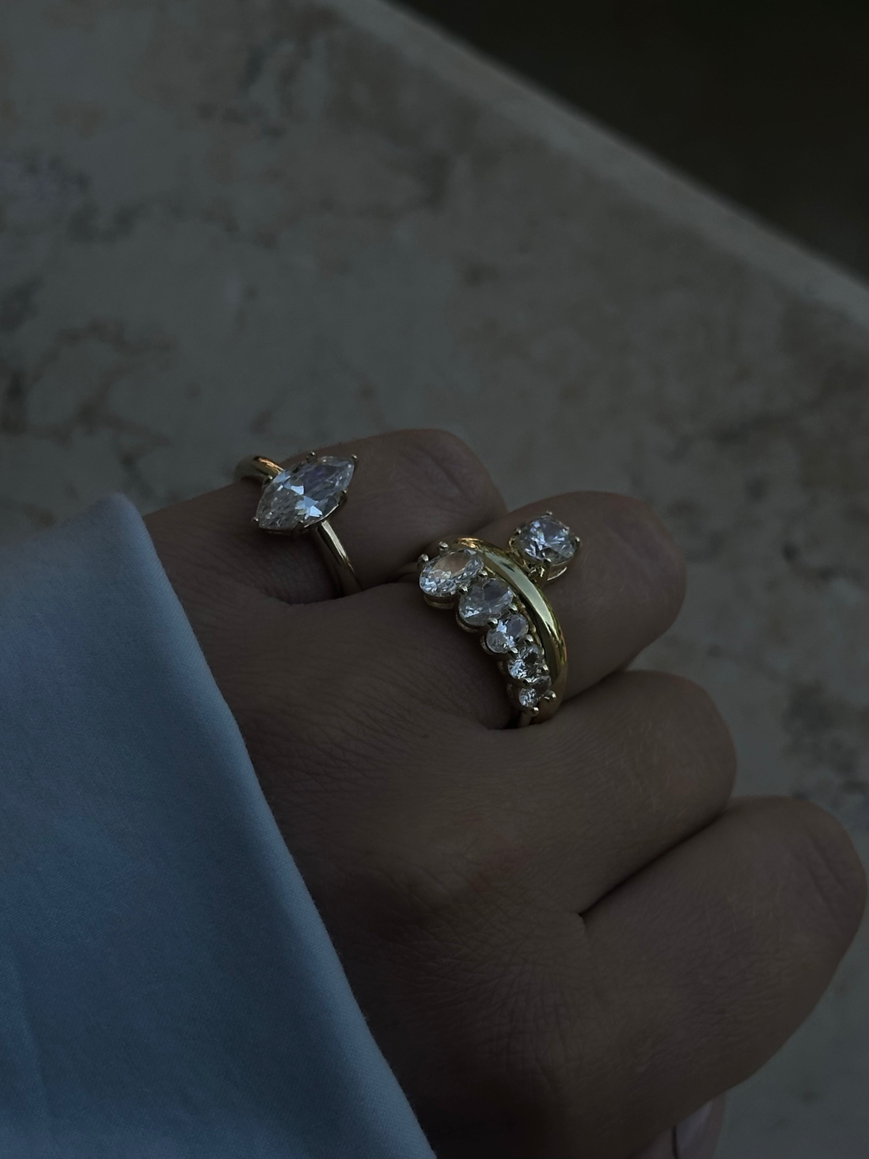 טבעת עשוייה פליז בציפוי זהב 14k עם גימור יוקרתי בעובי 2 מיקרון לשמירה על הברק לאורך זמן.