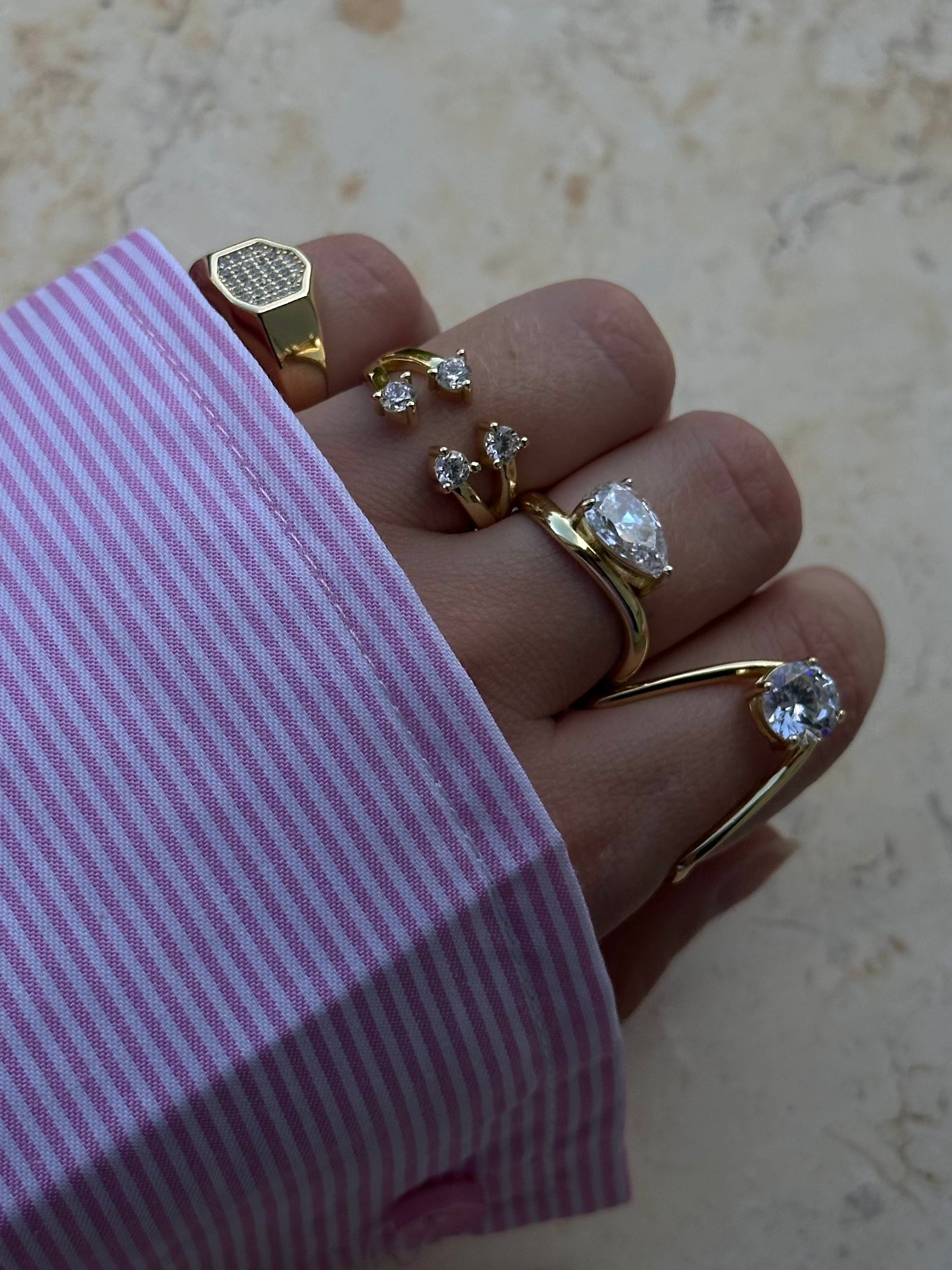 טבעת אלגנטית ומבריקה שמעניקה מראה יוקרתי בכל הופעה. עשויה מחומרים איכותיים לעמידות גבוהה ונוחות יומיומית: ניתן לבחור כסף אמיתי 925 או כסף 925 מצופה רוזגולד , צבע הזהב עשוי מפליז מצופה זהב בעובי 2 מיקרון.