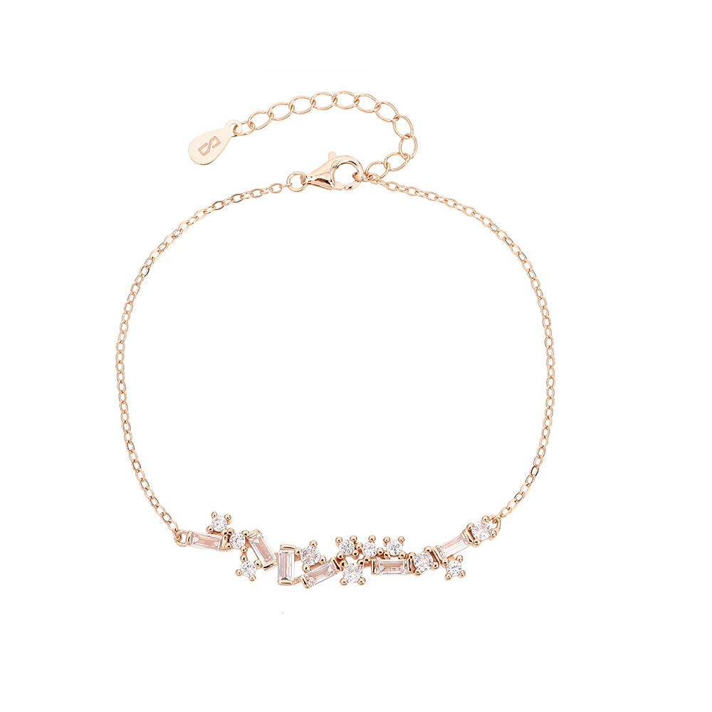 צמיד מכסף אמיתי 925 בציפוי זהב אדום (רוזגולד) – שילוב מושלם בין עמידות, סטייל וזוהר. משובץ זרקונים נוצצים לכל אורכו, למראה יוקרתי ועדין