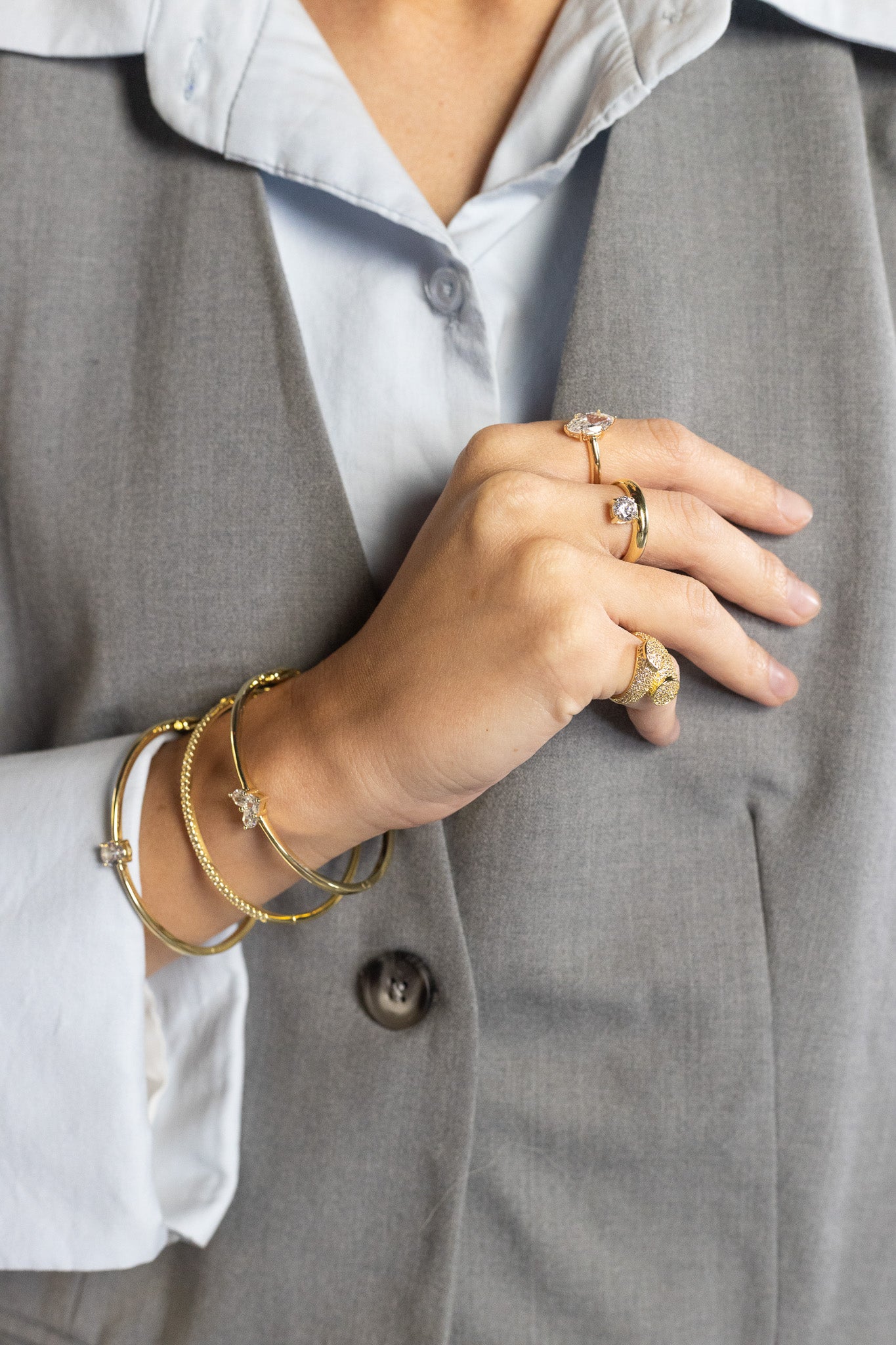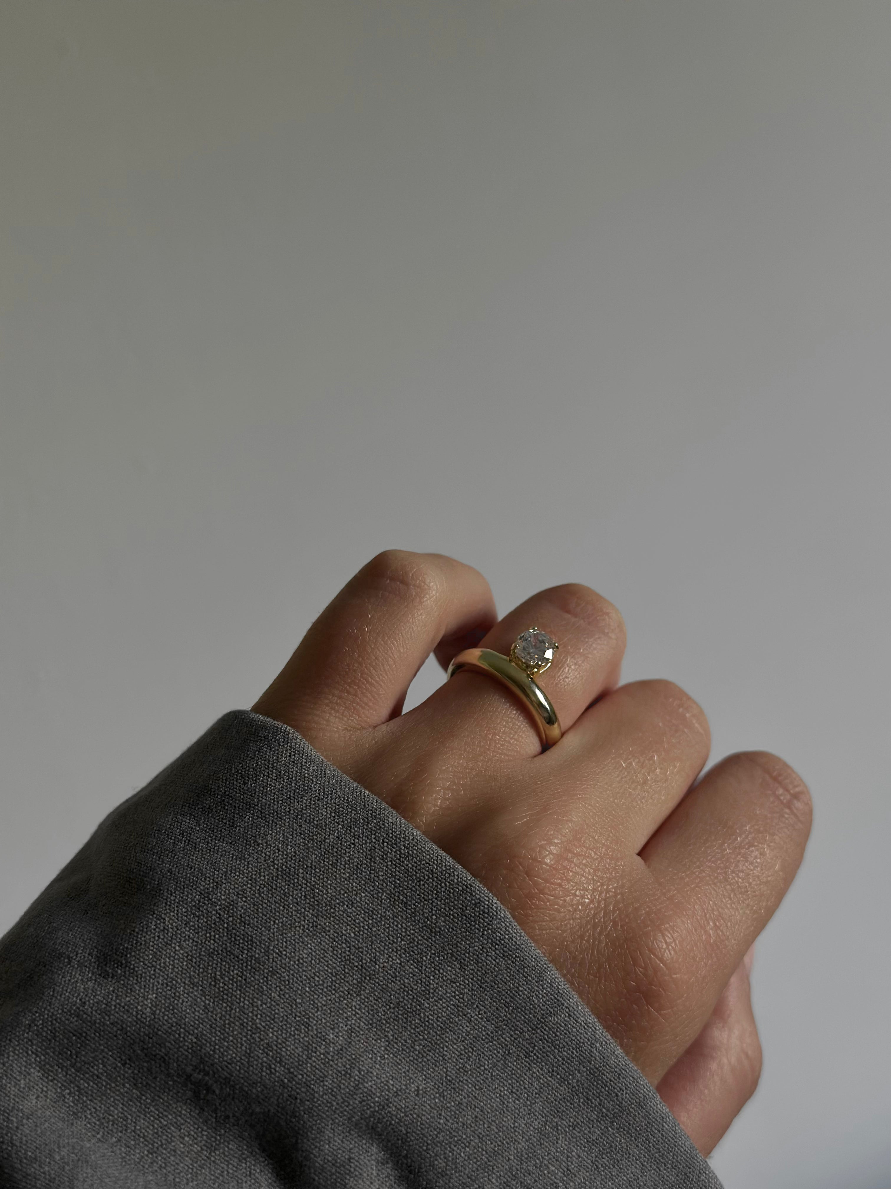 טבעת עשוייה פליז בציפוי זהב 14k עם גימור יוקרתי בעובי 2 מיקרון לשמירה על הברק לאורך זמן.