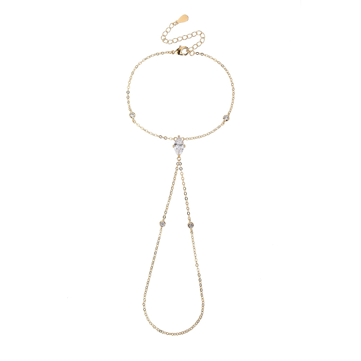 צמיד משולב טבעת עשוי פליז בציפוי זהב 14K בעובי 2 מיקרון משובץ אבני זרקון